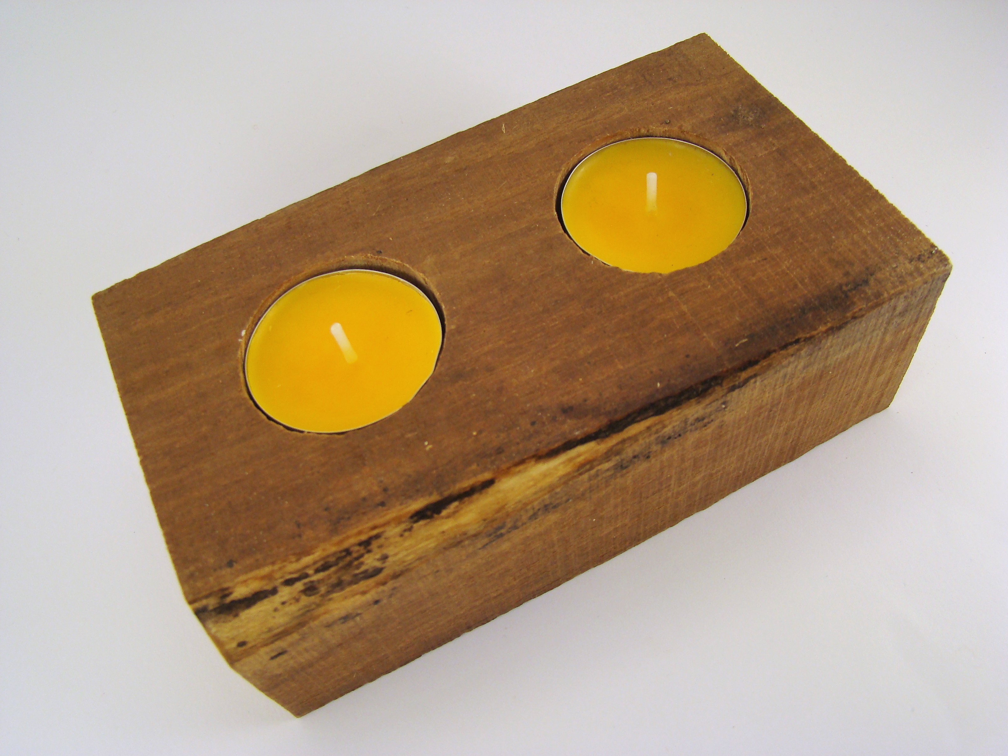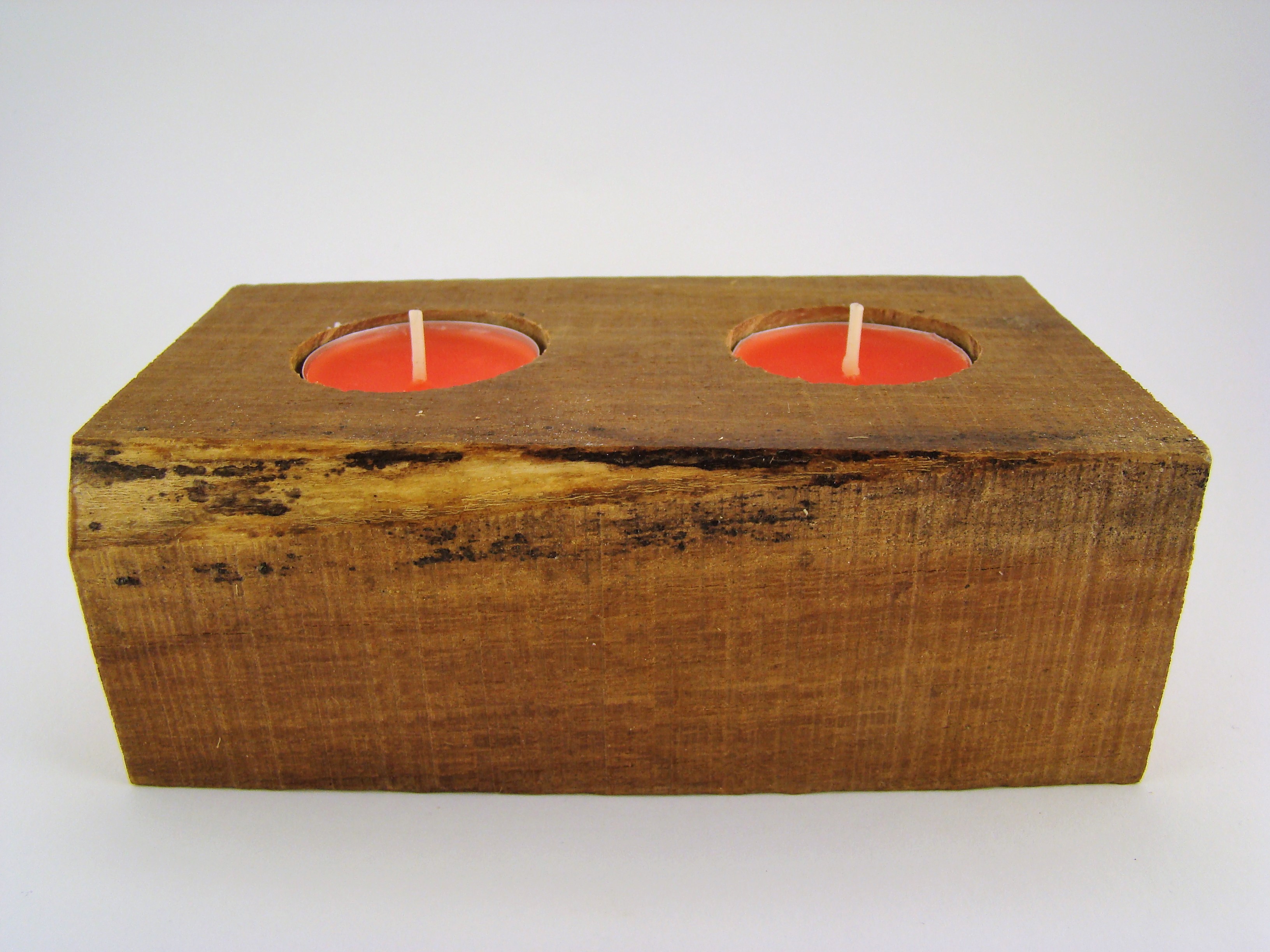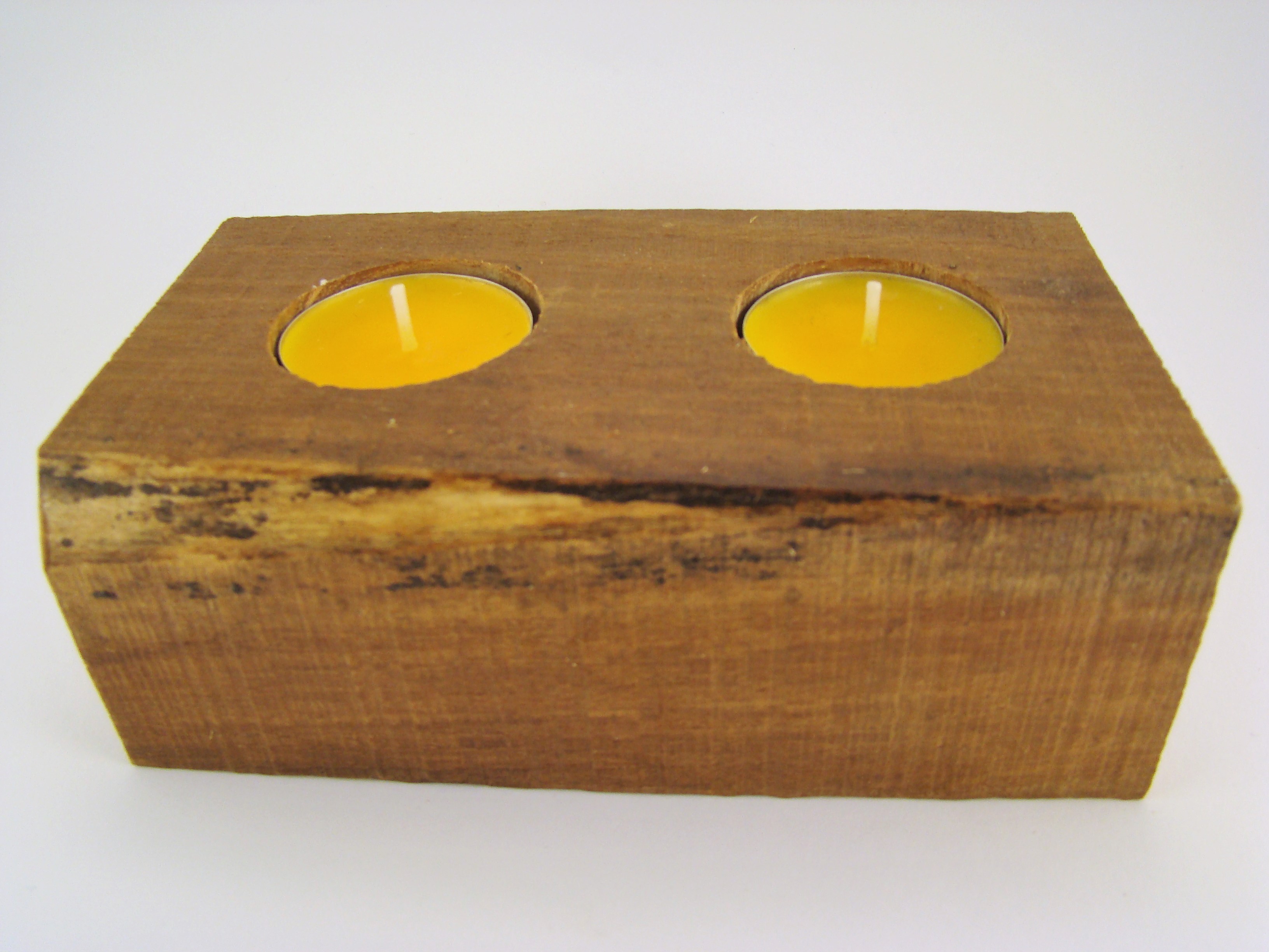 Bloco retangular em madeira de eucalipto para 2 velas.