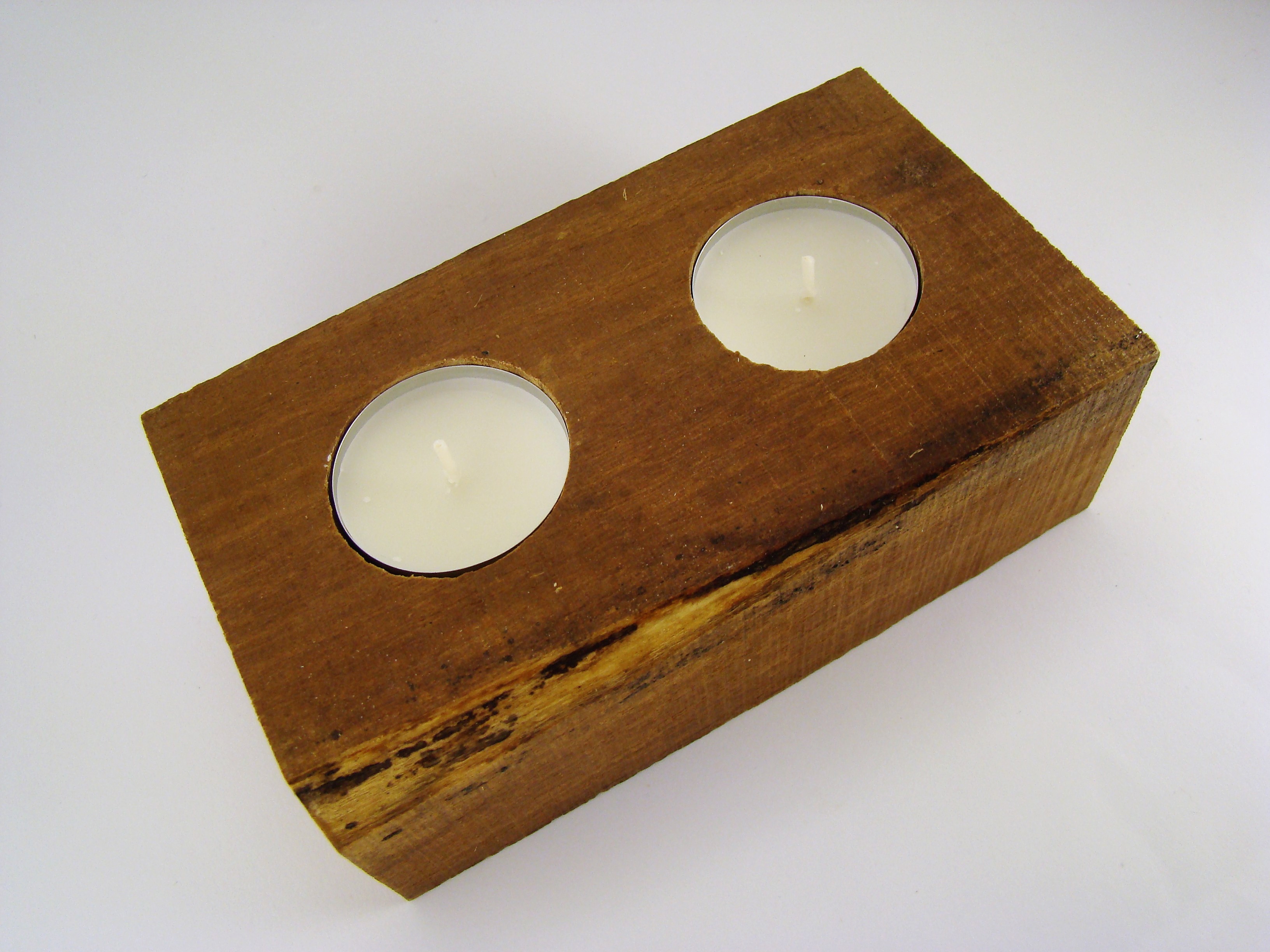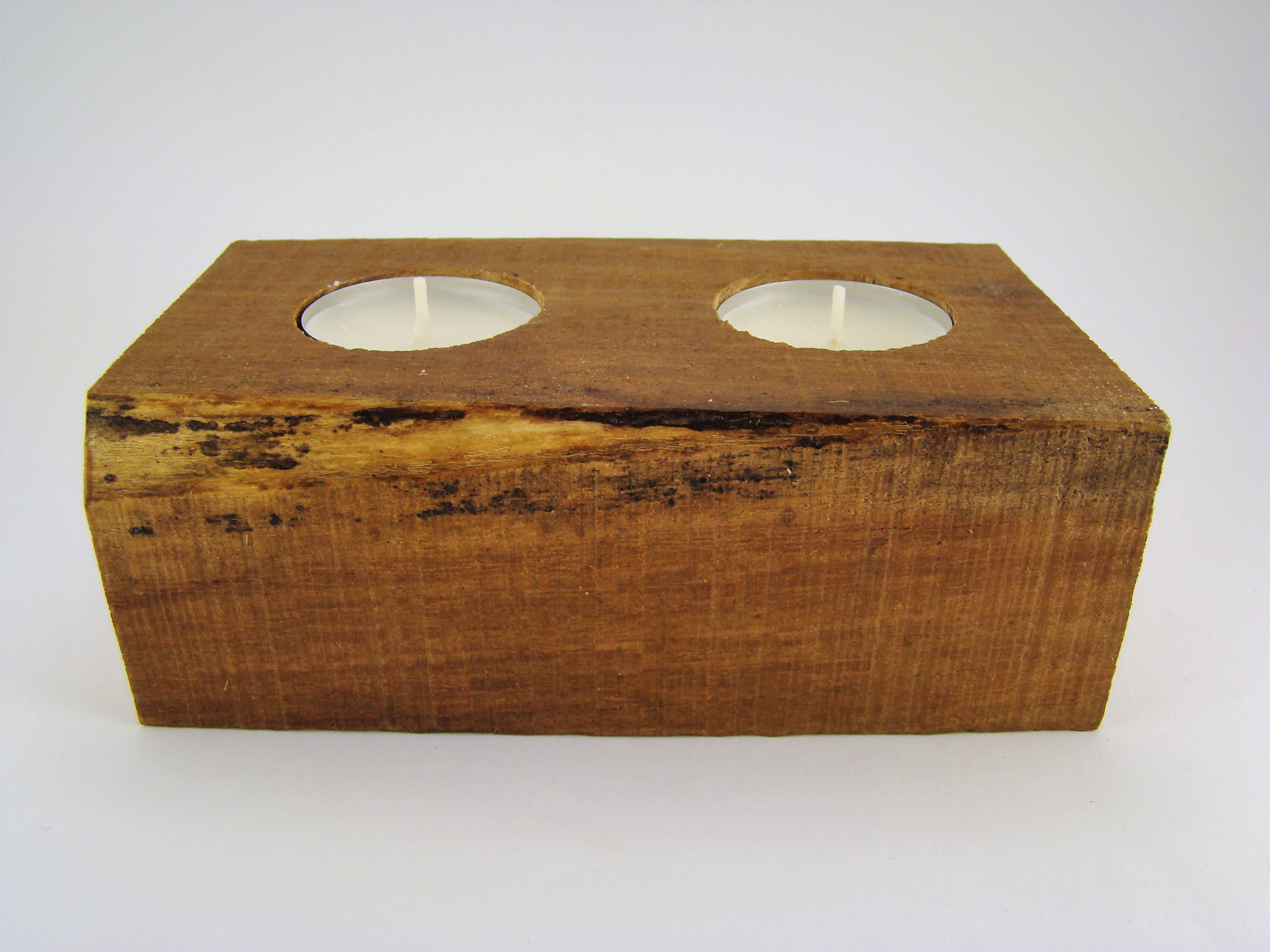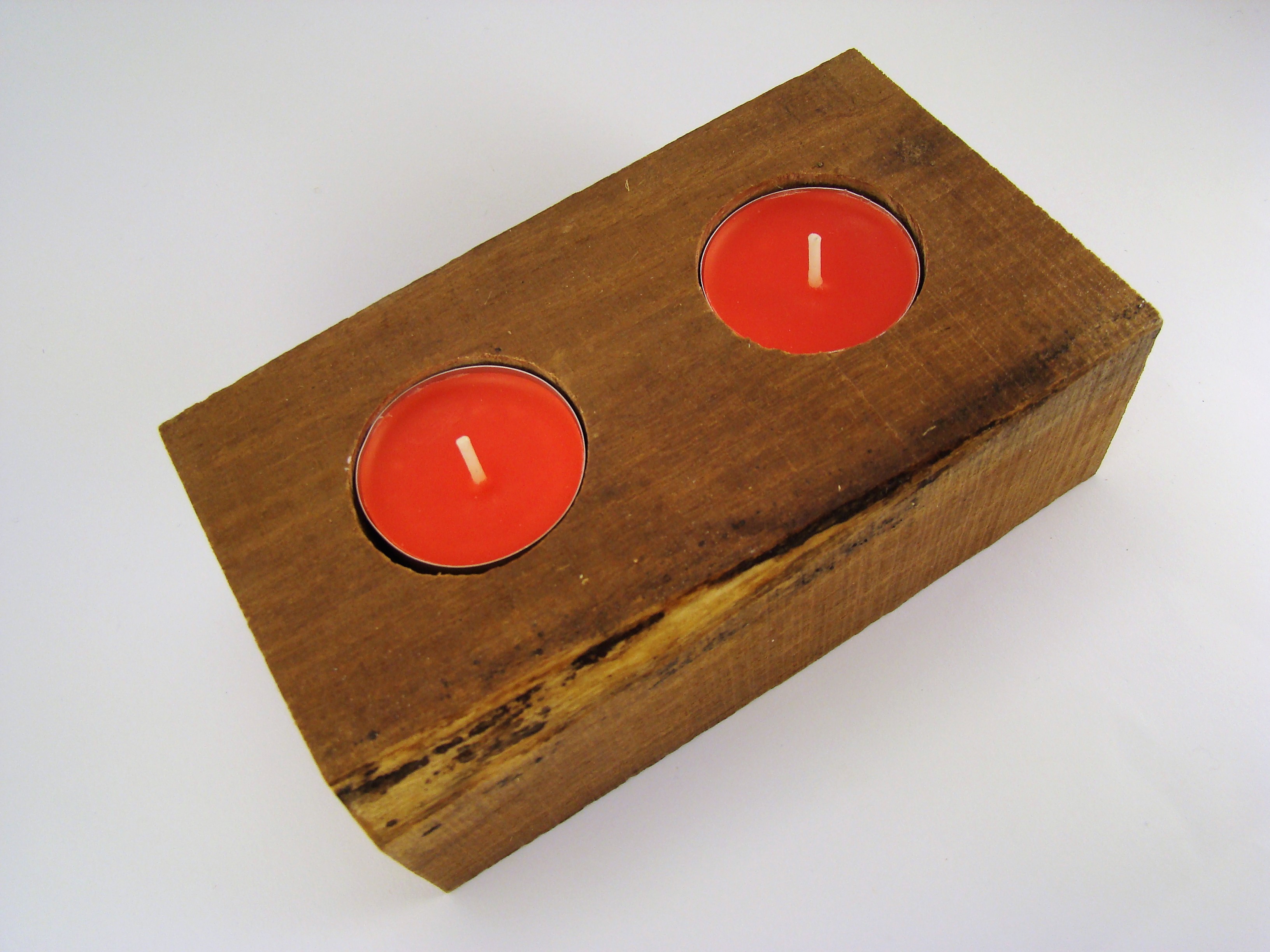 Bloco retangular em madeira de eucalipto para 2 velas.