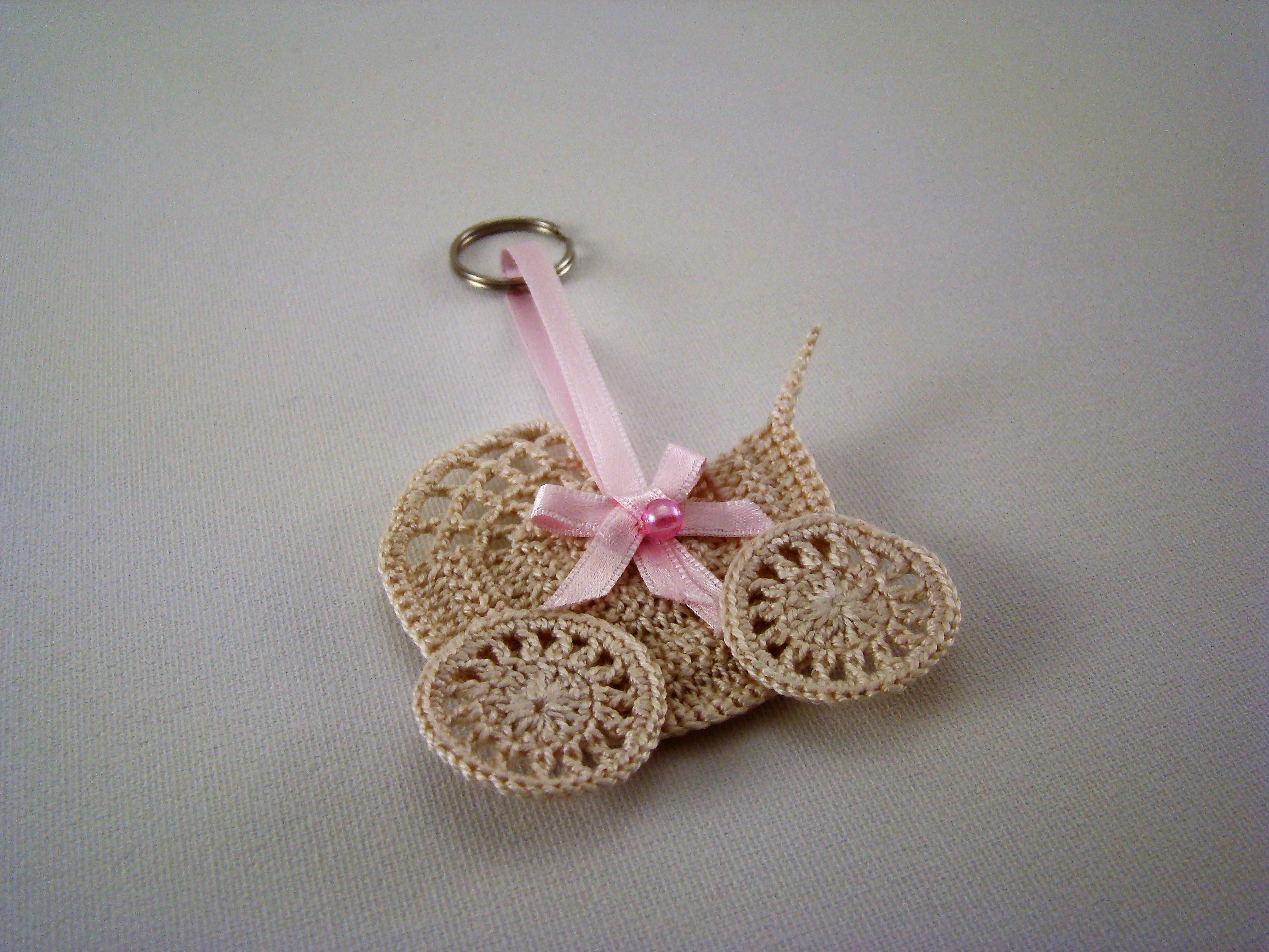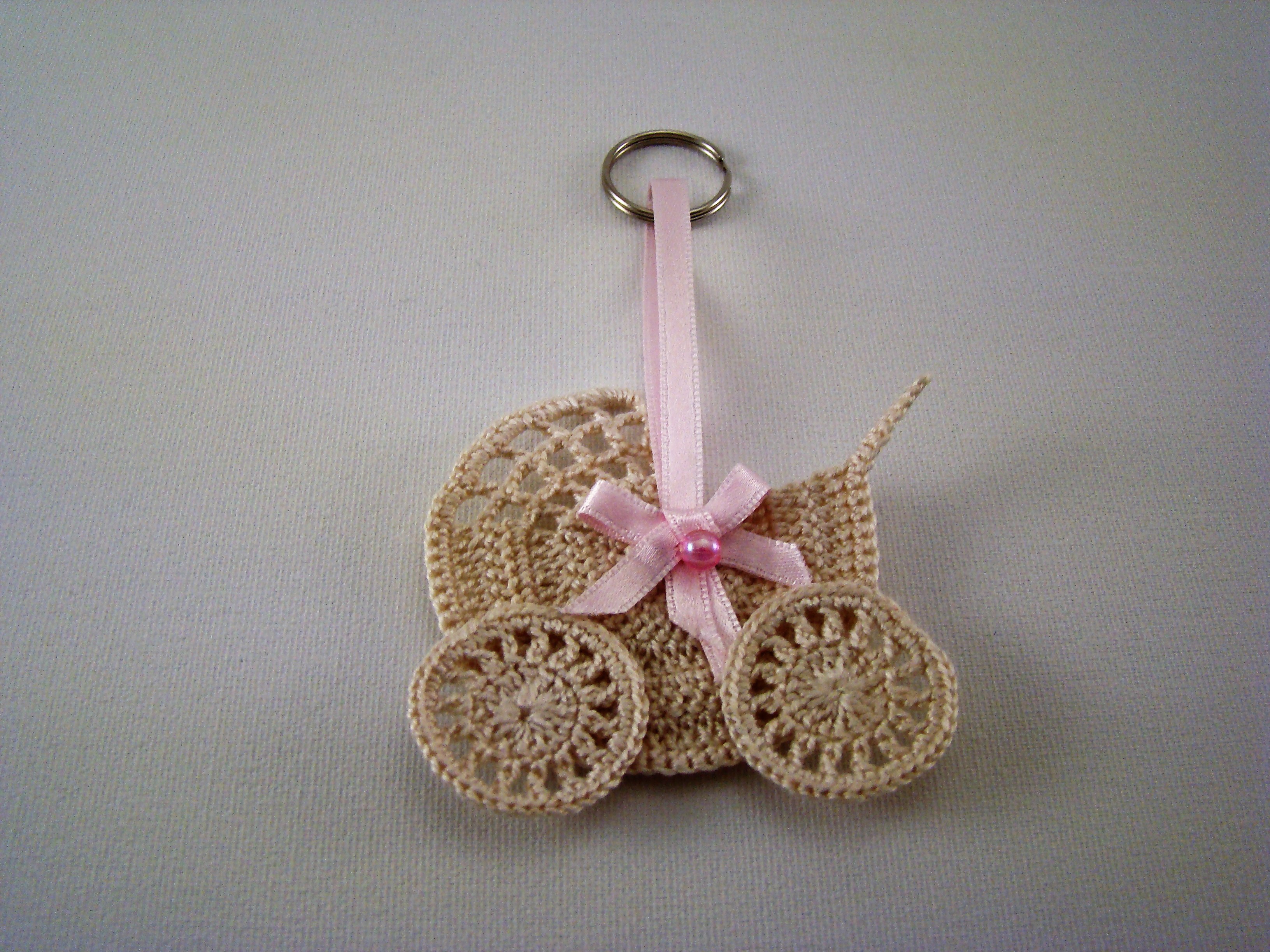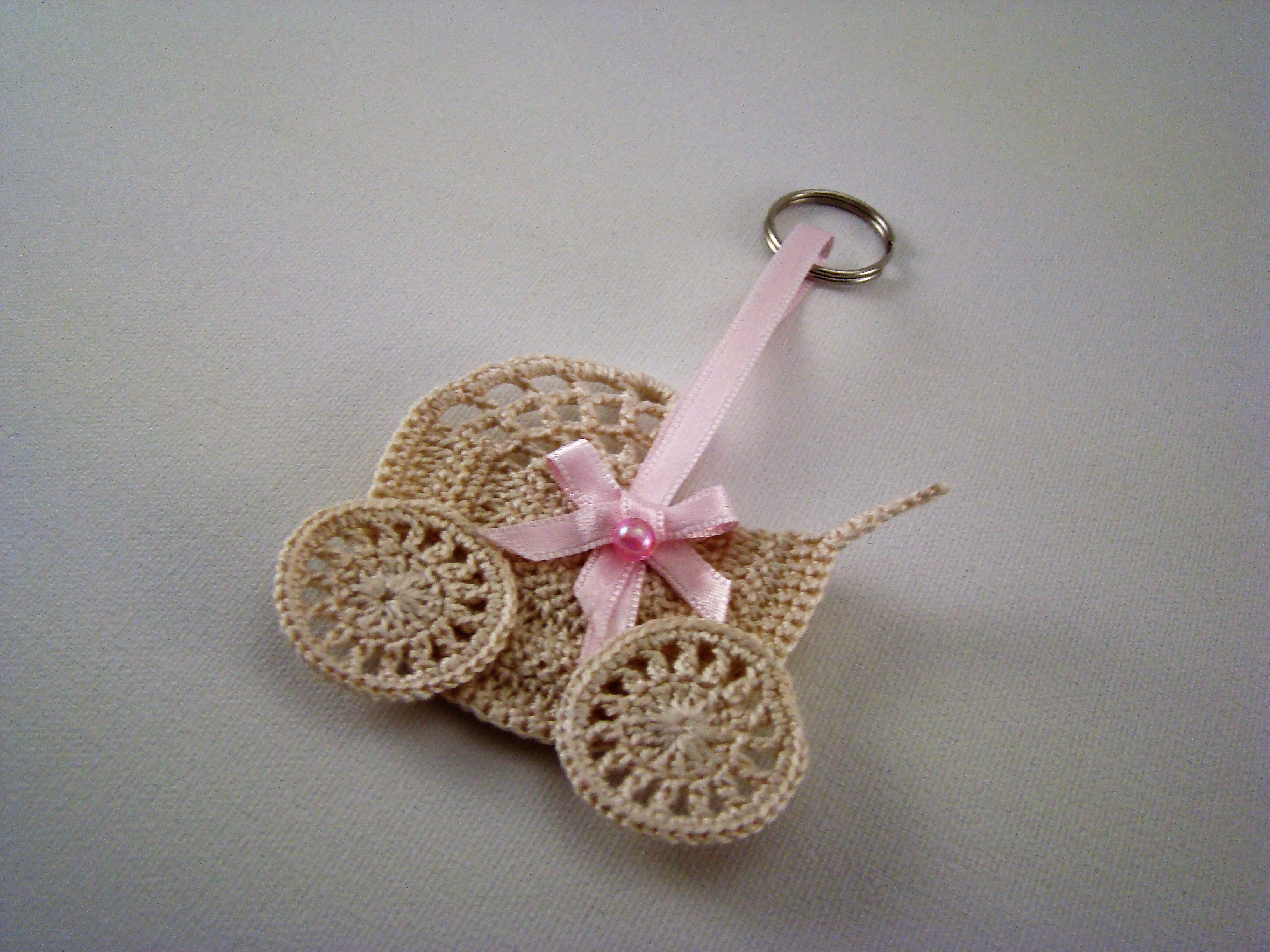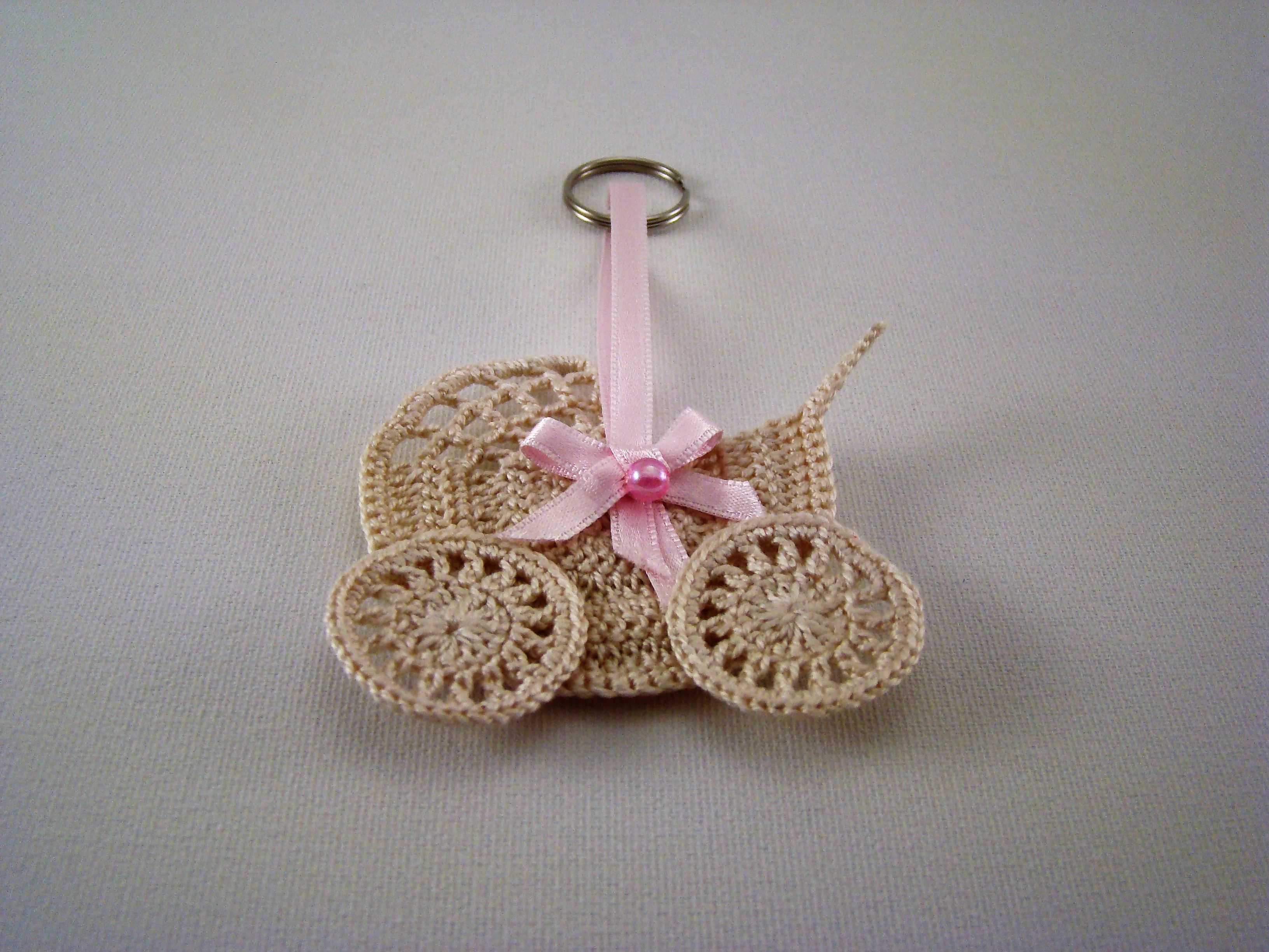 Porta Chaves Carrinho de bebé miniatura, em crochet, algodão n.º 12, cor beje
